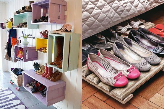 Estes caixotes utilizados como sapateira são uma ótima idéia. Imagem retirada do blog:Coisinhas de Menina Mulher